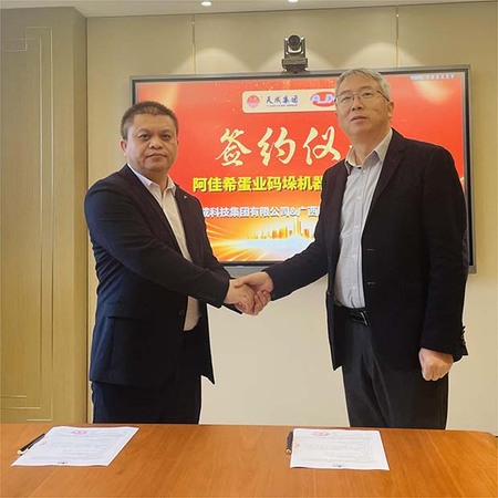 【概要描述】2023年11月9日,江苏天成科技集团引入广西阿佳希科技股份有限公司蛋禽养殖系统与码垛机器人项目,即阿佳希蛋业码垛机器人应用项目,双方就原有作业流程、项目需求以及预计项目成效等内容做了深入交流。