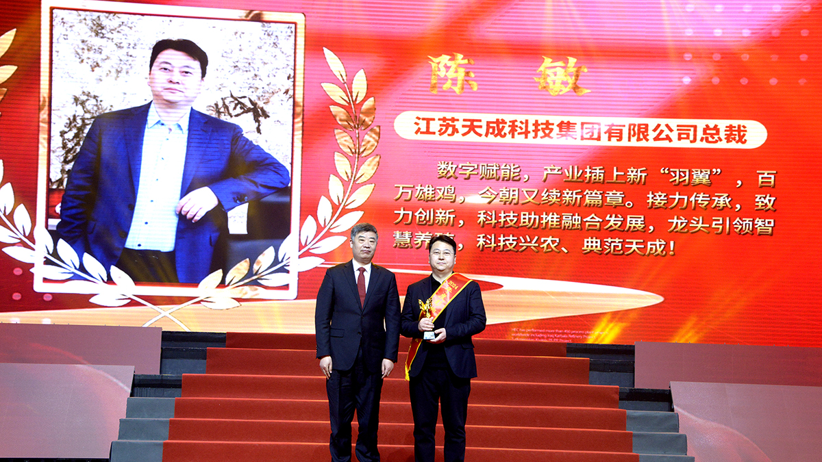 2025年2月4日,海安市经济高质量发展会议暨2024年度影响力企业家颁奖仪式在海安文化艺术中心隆重举行。江苏天成科技集团总裁陈敏荣获“海安影响力企业家”和“四星级企业家”两项殊荣,是唯一一家获此殊荣的农业龙头企业。凭借综合实力,集团还同时荣获“海安市工业百强企业”和“农业高质量发展十强企业”称号。